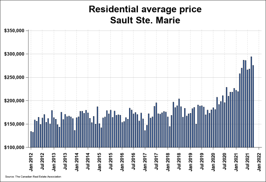 The number of homes sold in the Sault Ste Marie Real Estate Board for October 2021 set a new record, up by 13.5% from October 2020 for a total of 185 units.